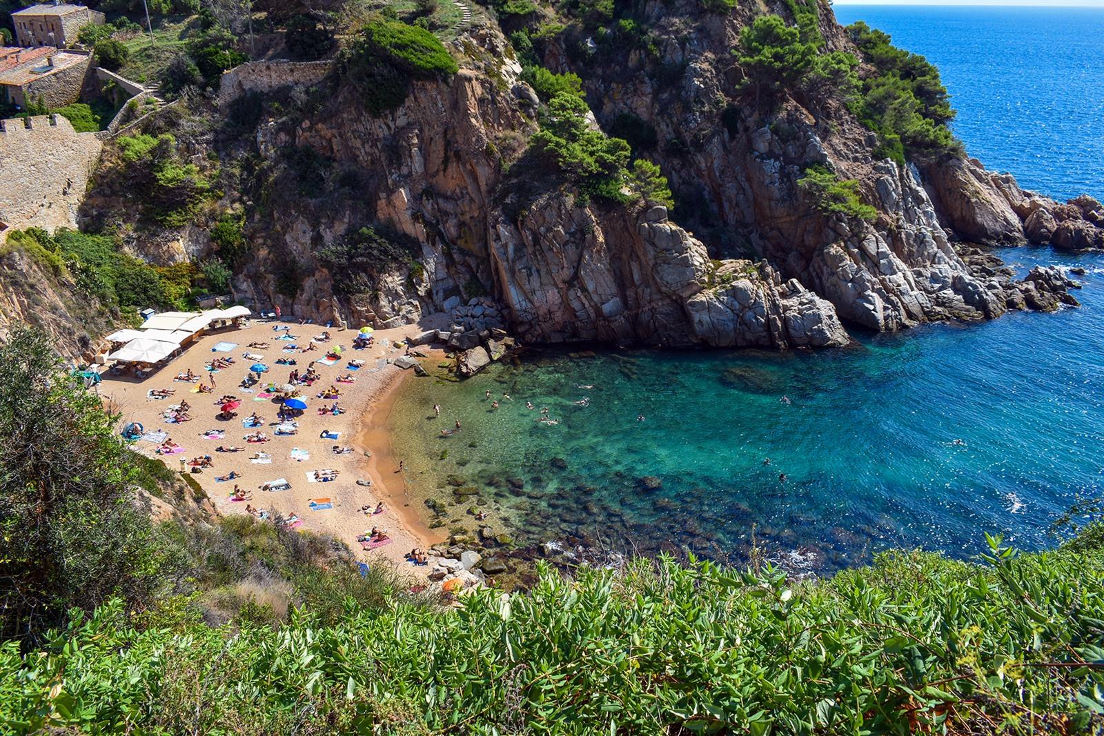 Het grote stadsstrand, Platja Gran, ligt pal onder de oude vesting. Je wandelt van de rand van de Vila Vella in een paar minuten naar het zand. Dat is dan ook een van de sterke punten van Tossa; je hoeft nooit ver te gaan. Alleen al voor het uitzicht zou je het strand eens moeten gezien hebben. Niet voor niets werd het in 2013 door National Geographic uitgeroepen tot een van de 25 beste stranden ter wereld. Het strand wordt omringd door een mooi landschap, het water is ondiep en rustig en er zijn verschillende terrassen in de omgeving.