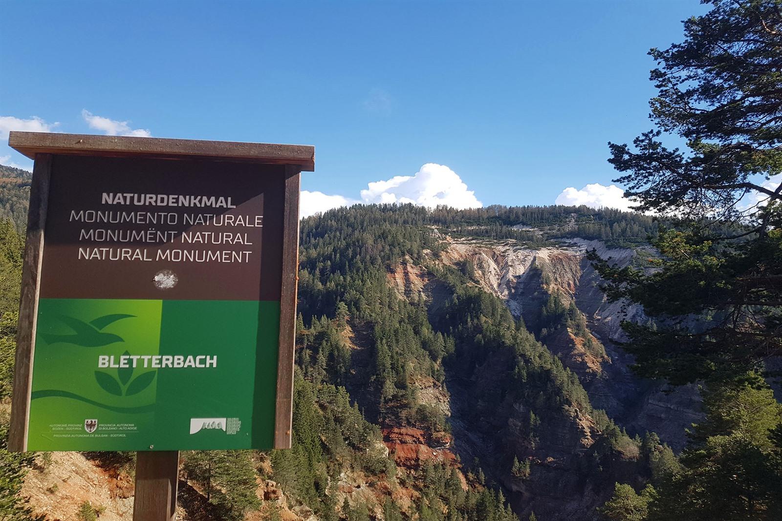 Sinds de laatste ijstijd, zo'n 18.000 jaar geleden, hebben verwering en erosie deze dramatische Bletterbach-kloof gevormd (bekijk ligging). Daarbij werd meer dan tien miljard ton rots in het Val d'Adige/Etschal-dal weggevaagd. De Bletterbach is 8 kilometer lang en tot 400 meter diep. Het is een venster op verschillende geologische tijdperken. Gefossiliseerde planten, schelpafdrukken en diersporen in de kloof vertellen het verhaal van flora en fauna in de prehistorie. Brullende watervallen en verbluffend natuurschoon maken wandeltochten door dit schitterende gebied een ervaring om nooit meer te vergeten.