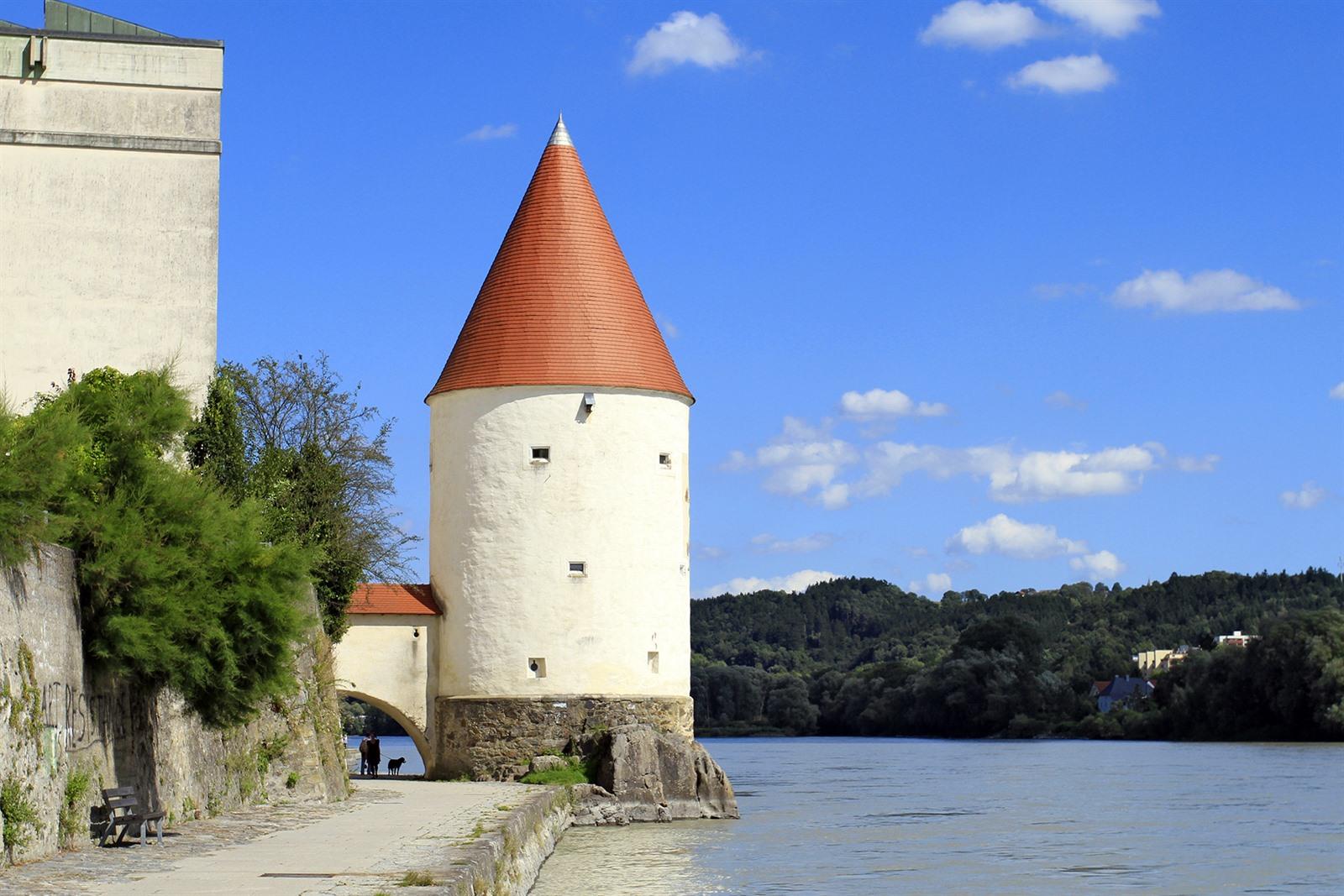 Niet ver van de Dreiflüsseeck staat de Schaiblingsturm, een opvallende ronde, witte toren met een nog opvallender rood spitsdak. De toren maakte ooit deel uit van de oude stadsmuren en heeft meerdere functies gehad. Oorspronkelijk werd hij gebouwd als verdedigingstoren, een bolwerk tegen vijandelijke aanvallen. Later werd de toren gebruikt als opslagplaats voor onder andere buskruit en diende het zelfs als woonplaats. Vroeger konden hier ook schepen aanmeren om hun handel aan wal te brengen. Tegenwoordig is de Schaiblingsturm een fotogeniek plekje in de stad en domineert hij het uitzicht langs de oever van de Inn.