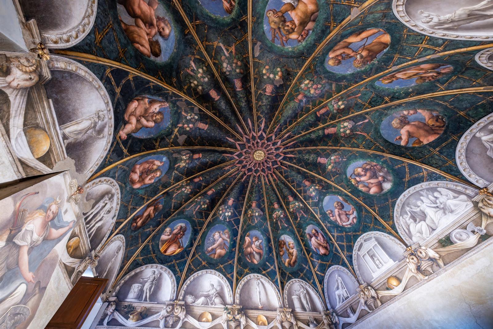 Nadat Giovanna Piacenza begin 16e eeuw aan het hoofd van de abdij was gekomen, vroeg ze lokale kunstenaars zoals Correggio om het klooster, en meer specifiek haar privéruimtes, te decoreren. Het resultaat was werkelijk adembenemend en kan je vandaag nog gaan bewonderen in de Camera di San Paolo. Op het plafond vind je een gigantische trompe-l’oeil van een pergola die opent richting de hemel.