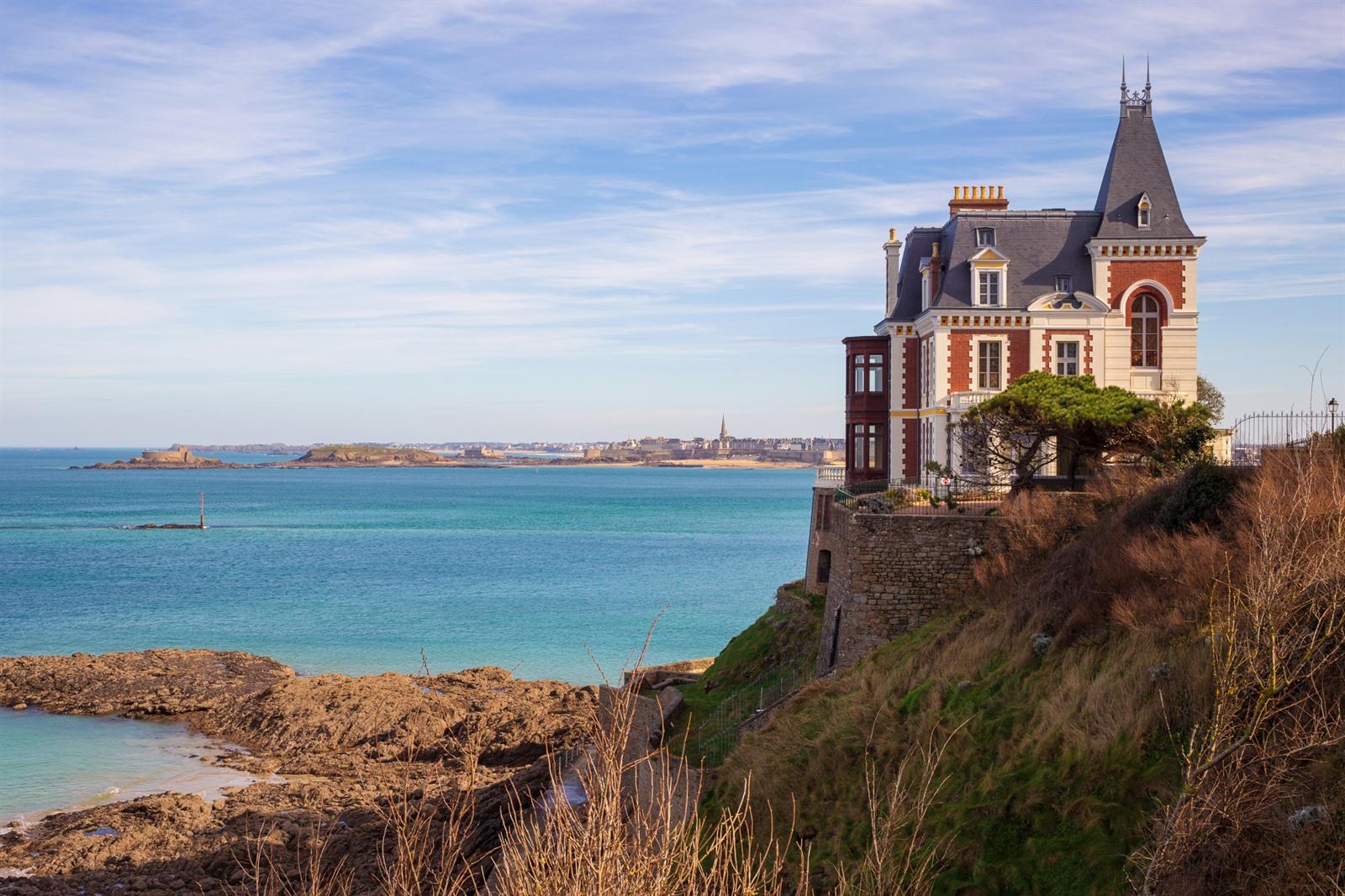 Een van de mooiste villa’s in Dinard is de Villa Les Roches Brunes, gebouwd in 1893. Deze statige villa torent hoog boven de rotsen uit en is vaak open voor tentoonstellingen en culturele evenementen. Je combineert er architectuur, geschiedenis én kunst in één bezoek.