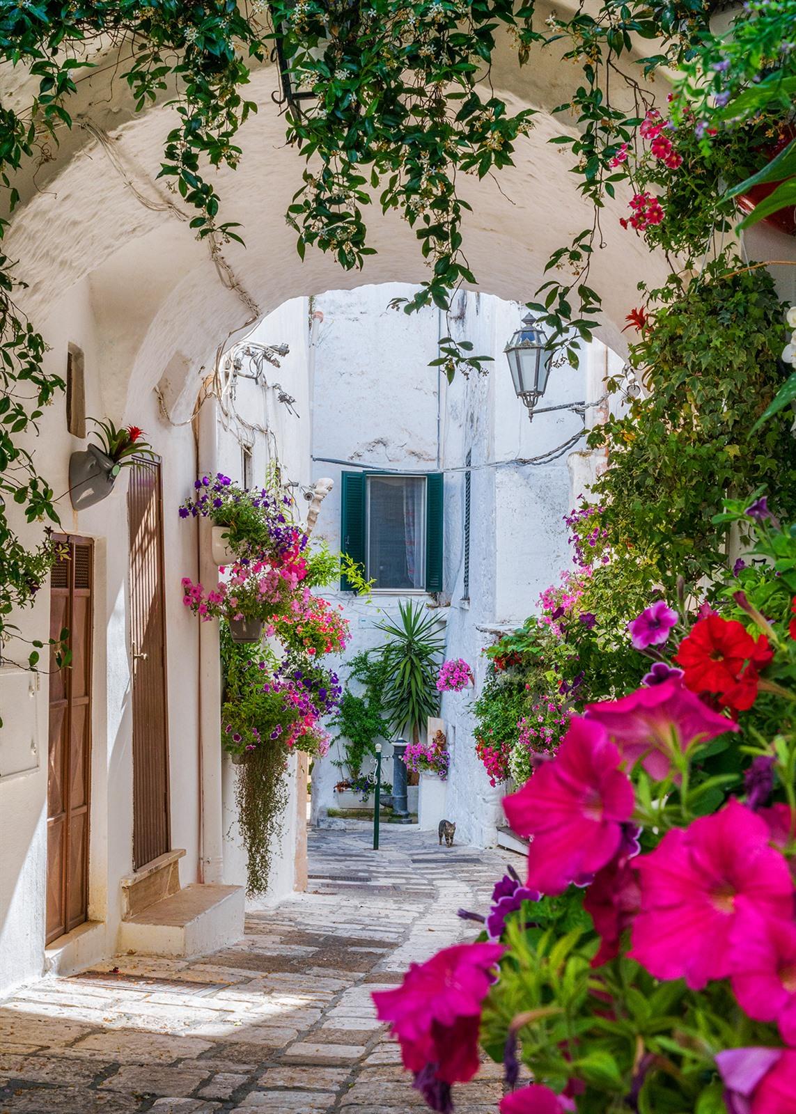 Een doolhof van smalle steegjes met hier en daar mooie doorkijkjes, steile trappen die je naar hogergelegen stadsdelen brengen, witgekalkte huizen met kleine balkonnetjes vol bloemen... dat is wat je je mag voorstellen bij het historische centrum van Ostuni. Je kan hier gerust urenlang rondslenteren, zonder dat je je één moment verveelt. Ook de talloze kleine winkels, verscholen in de vele steegjes, lokken je op bizarre wijze naar binnen. Op zoek naar een leuk souvenir? Dan moet je hier zijn! Van handgemaakte keramiek, tot lokale souvenirs en olijfolie die in de nabije omgeving werd geproduceerd, alles vind je hier.
