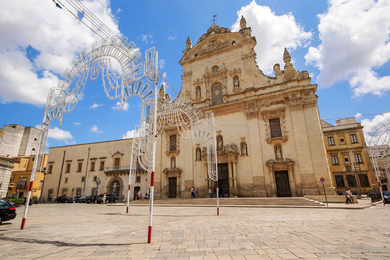 - De Kathedraal van Lecce (Basilica di Santa Maria), gewijd aan Maria, werd gebouwd in 1144. De hoofdingang van de kathedraal is in een gevel die als meesterwerk van barokke architectuur wordt beschouwd.