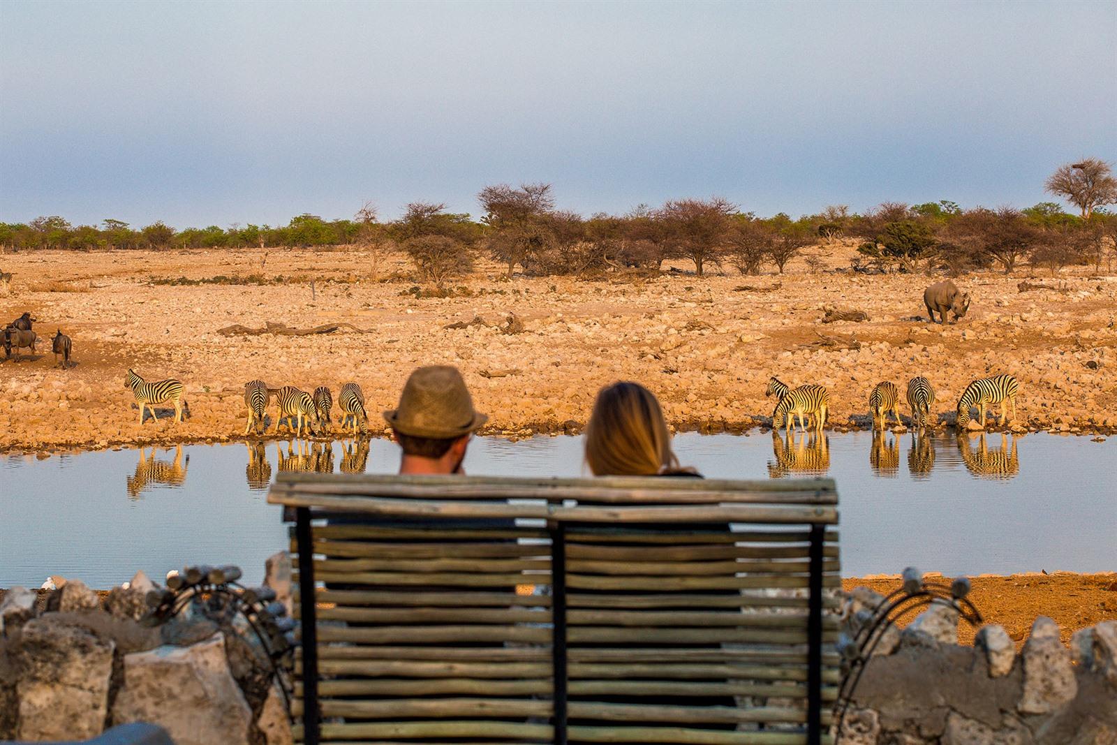 Je kan ook meteen doorrijden naar het Okaukuejo Camp, een van de bekendste lodges in het park. Hier wacht je misschien wel een van de mooiste avonden van de hele rondreis. Vanaf dit verblijf heb je namelijk zicht op de verlichte waterhole waar wilde dieren in het donker komen drinken. Bovendien overnacht je vlakbij de ingang van het park, waardoor je de volgende ochtend meteen op ontdekking kan.