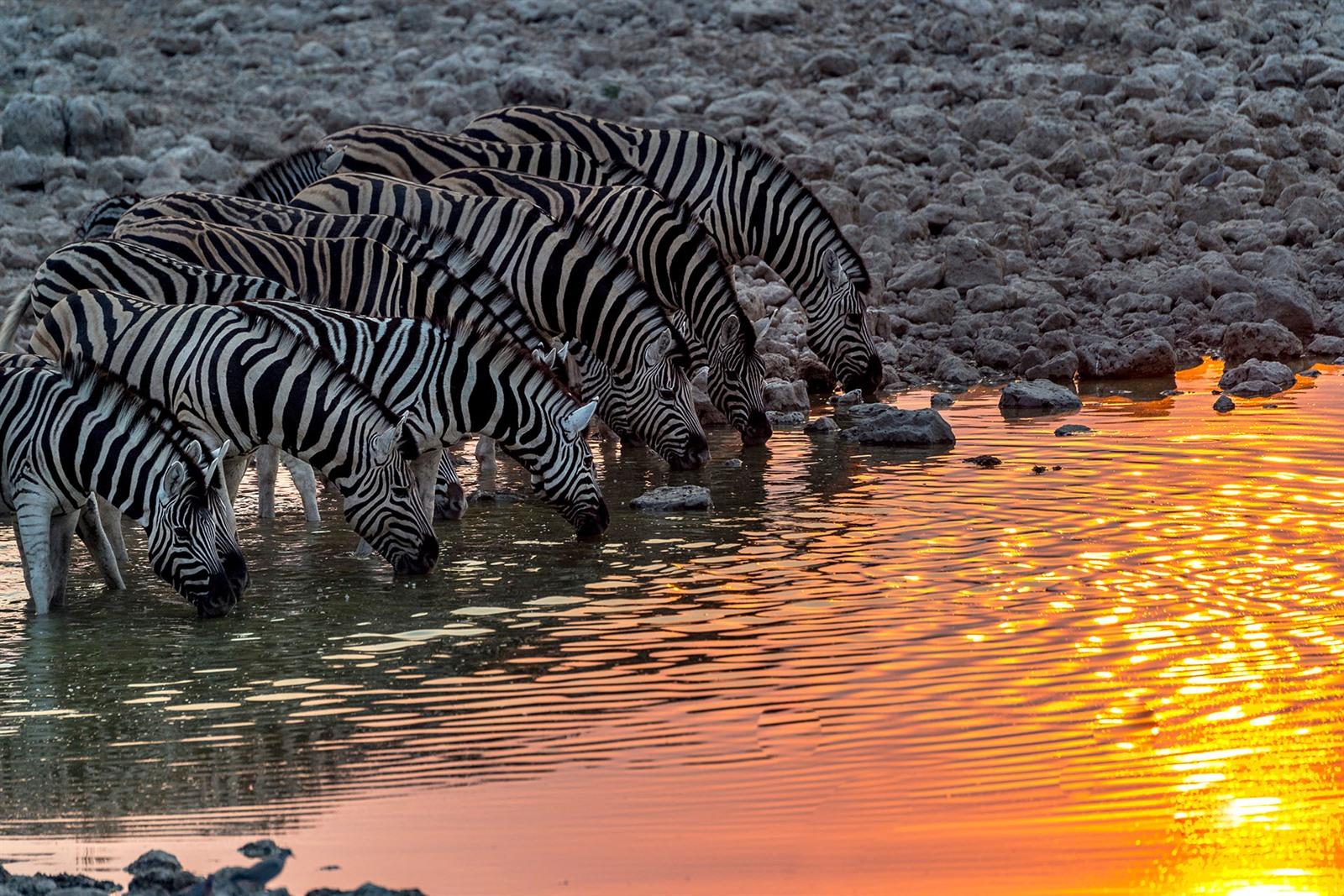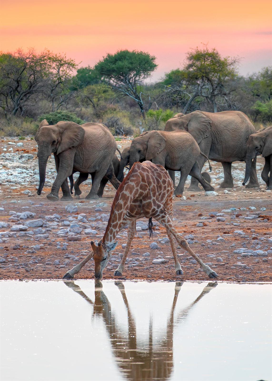 Tijdens je self-drive safari door het park kan je onder andere kuddes olifanten, giraffen, leeuwen, zebra’s, springbokken en (met wat geluk) cheeta’s en luipaarden spotten. Het park staat ook bekend als een van de beste plekken in Afrika om de zeldzame zwarte neushoorn in het wild te zien, vooral tijdens de nacht bij de waterpoel van Okaukuejo. Naast zoogdieren leven er meer dan 340 vogelsoorten in het park. Voor vogelliefhebbers is Etosha dus ook een waar paradijs.