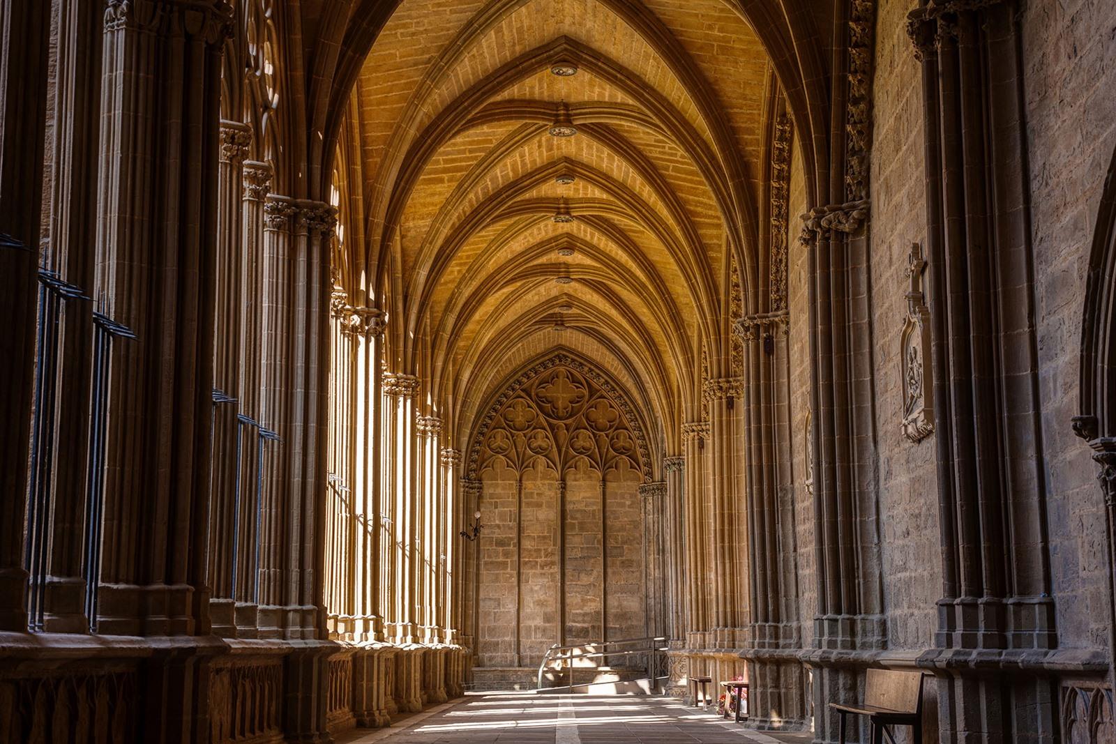 Achter de sobere neoklassieke gevel van de kathedraal van Pamplona schuilt een van de mooiste voorbeelden van Spaanse gotiek. Je vindt er het grafmonument van Karel III de Edele en zijn vrouw Eleonora van Castilië, een meesterwerk van gotische beeldhouwkunst en de gotische kloostergang, die beschouwd wordt als een van de mooiste in Europa. Verder zijn er de mooie koorbanken, kleurrijke gewelven en romaanse beeldhouwwerken. Voor wie dieper wil graven in de geschiedenis is de Occidens-tentoonstelling een aanrader – een moderne presentatie over de westerse cultuur.