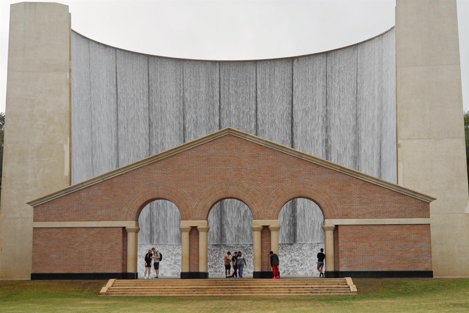 De grote fontein werd in de jaren tachtig ontworpen in opdracht van projectontwikkelaar Gerald D. Hines, samen met architecten als Philip Johnson. De muur is bekleed met graniet en zwart obsidiaanaggregaat en je ziet ook 13 betonnen ribben in de vorm. Het water stroomt zowel binnen als buiten naar beneden en zorgt voor een fijne nevel. Samen met het park is het een aantrekkelijke plek om te relaxen, picknicken en foto's te schieten.